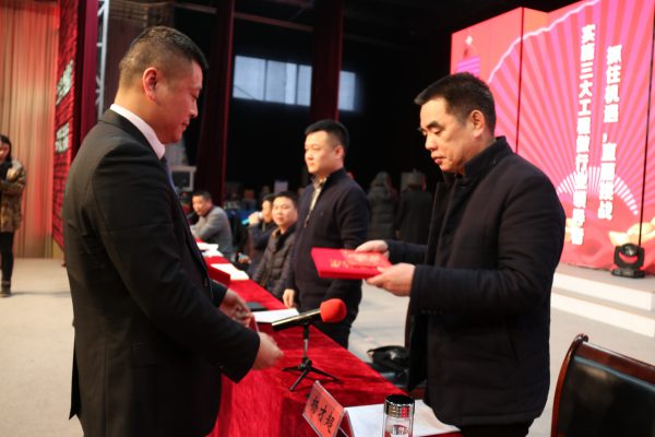 在副總經理代中旭宣讀2019年市場營銷規劃、總經理楊華登宣讀2019年聘用文件后,楊才超董事長發表重要講話。